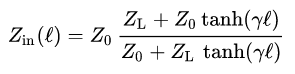該傳輸線阻抗值在阻抗匹配中很重要,可以用來量化傳輸線何時(shí)超過臨界長(zhǎng)度;請(qǐng)看鏈接文章,了解如何量化允許的阻抗失配。無需重復(fù)該文章中的所有內(nèi)容,輸入阻抗取決于特性阻抗,傳播常數(shù),負(fù)載阻抗和傳輸線的長(zhǎng)度: